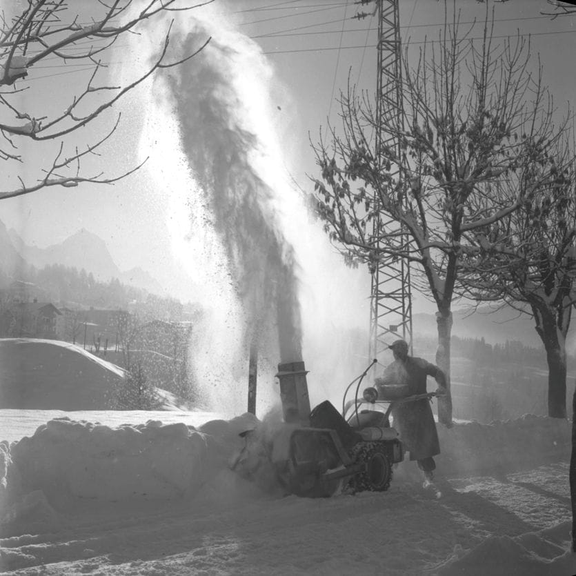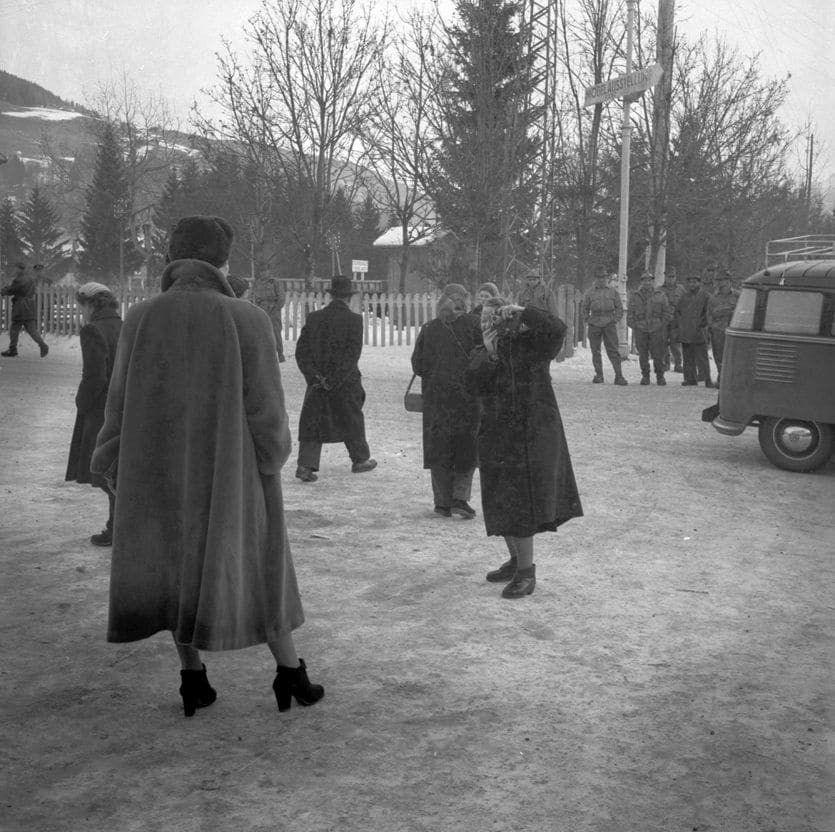 There are a few ladies posing in eight heels and fur coat in front of the five circles, or two cooks embraced by Toni Sailer, the Austrian downhill skier and winner of all three Alpine skiing events, or a porcelain Sophia Loren among the tourists, or some good-hearted person dressed as a polar bear with an umbrella, looking for a souvenir shot against a white background. Ouch, how we miss so much snow... The Publifoto photographers have multiple Fiat 600s to be everywhere, even perched on scaffolding without many safety regulations for pictures from above, which even TV operators are looking for.