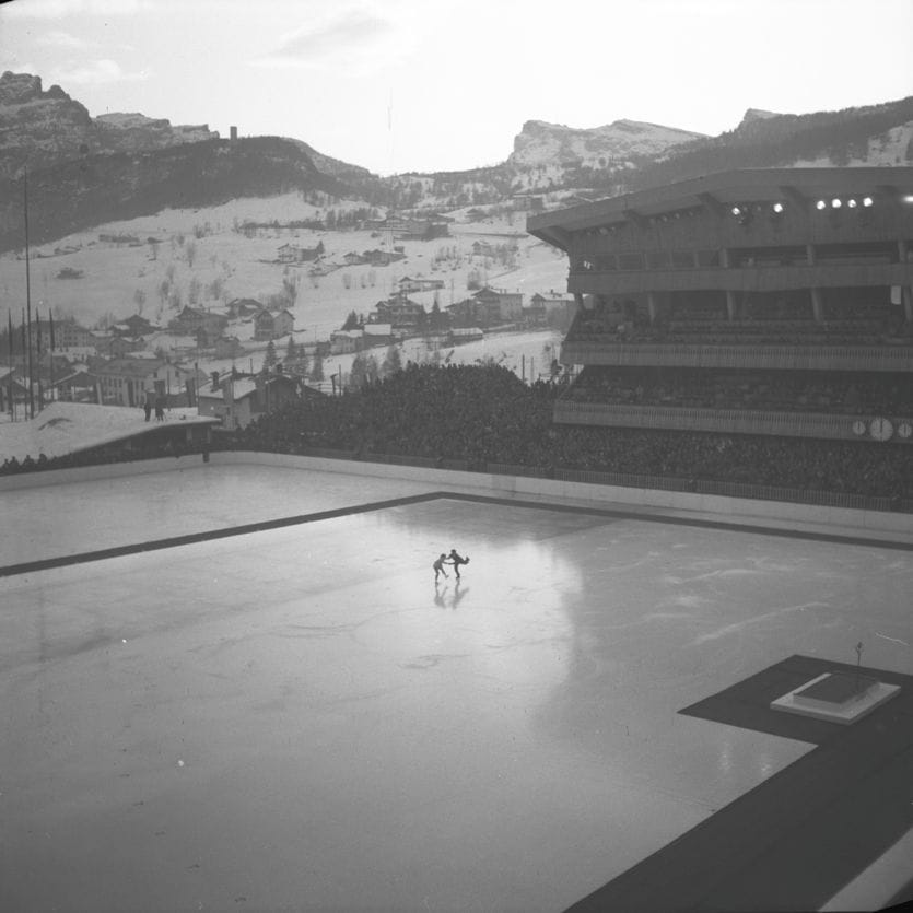 Speaking of brands, there were many in Cortina: liquor, gas, fizzy drinks, TV. It's advertising, beauty. But no logos on the competition fields, sumptuous and magnificent: the Olympic Ice Stadium, designed by architect Mario Ghedina, and the Trampoline Italia, with its critical point at 72 metres, which just to see it from below is dizzying. Like the ski jumpers who hurl themselves into the void and pierce photographs.