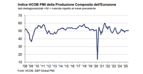 The composite Pmi index in August, according to the flash estimate, rose to 51.1 from 50.9 in July, reaching the highest level in 15 months. in August, according to the flash estimate, it rose to 50.5 from 49.8 in July, topping the highest level in 48 months. The Pmi services index, on the other hand, fell to 50.7 from 51 in the previous month.