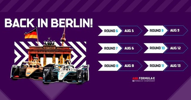 Sei gare in sei giorni per la chiusura di una travagliata stagione La formula scelta per il finale di stagione, dopo l'ok della Fia, prevede tre coppie di gare a porte chiuse in sei giorni: 5/6, 8/9 e 12/13 agosto. Le sei gare che si aggiungeranno alle cinque già disputate tra novembre e febbraio, si svolgeranno su un circuito ricavato all'interno del dismesso dal 2008 aeroporto di Tempelhof a Berlino.