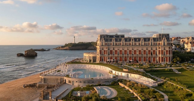 Very romantic is the story surrounding the Hôtel du Palais in Biarritz dating back to 1855 when Napoleon III and his wife Eugenia Maria de Montijo de Guzman, an Andalusian by order, wanted to fulfil their wish to own a palace in the famous resort town on the Atlantic Ocean. Villa Eugénie, as it was called, was later sold by the Empress in 1881 to the Banque Parisienne, which turned their mansion into a hotel-casino. Reconstruction after a destructive fire in the early 1900s did not affect its original form, which corresponds to the letter E. The view of the waves, the gardens, the scenic beach confirm how shrewd the French rulers were in their choice of sumptuous chandeliers, frescoed walls and period furniture. Visible even from the rooms, the iconic Rocher de la Vierge lighthouse is within walking distance, as is the église Sainte-Eugénie in Romanesque-Byzantine style. The Historical Museum is also a must-see destination to understand the stages that led this fishing bay to become France's most renowned oceanfront resort, earning it the nickname Plage des Rois.