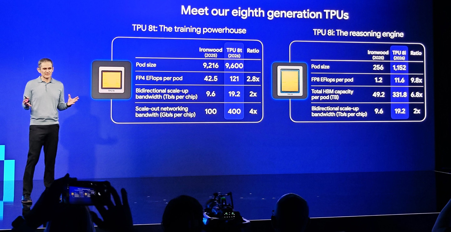 LAS VEGAS - Today sees the start of Google Cloud Next 2026, the annual event in Las Vegas where the Cloud and AI part of Google shows this year's innovations to press, partners, suppliers and customers. Keynotes on business strategy, product presentations and various initiatives are expected to give the market yet another leap forward on AI agents (increasingly in vogue) and data processing in Artificial Intelligence sauce. But yesterday, a presentation dedicated to its two new custom processors belonging to the eighth generation of TPUs was held at the Formula 1 facility in the city of vice. Google Cloud has been designing its data centre processors on its own since 2013, and for some time now the pace of products has intensified, and even the company's CTO, Amin Vahdat, has anticipated that we could see three of them as early as next year if the evolution of the AI sector proceeds at this furious pace. For the time being, however, we have TPU 8T and TPU 8i, born out of the realisation that a single solution can no longer efficiently meet the different needs of the AI lifecycle.