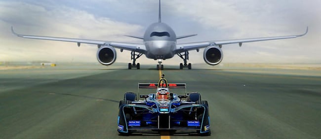 Qatar Airways ha divulgato un video mozzafiato di una gara testa a testa tra la macchina da corsa di Formula E Spark SRT-01E e due jet wide body: il Boeing 787 Dreamliner e l' Airbus A350 l'Hamad International Airport (HIA) di Doha, per celebrare la rinnovata partnership con il campionato automobilistico su strada completamente elettrico.