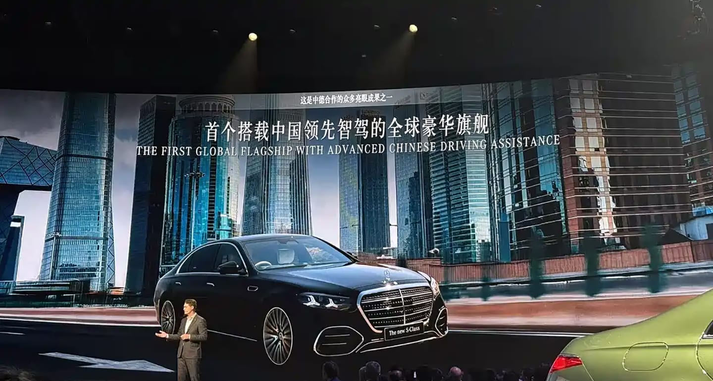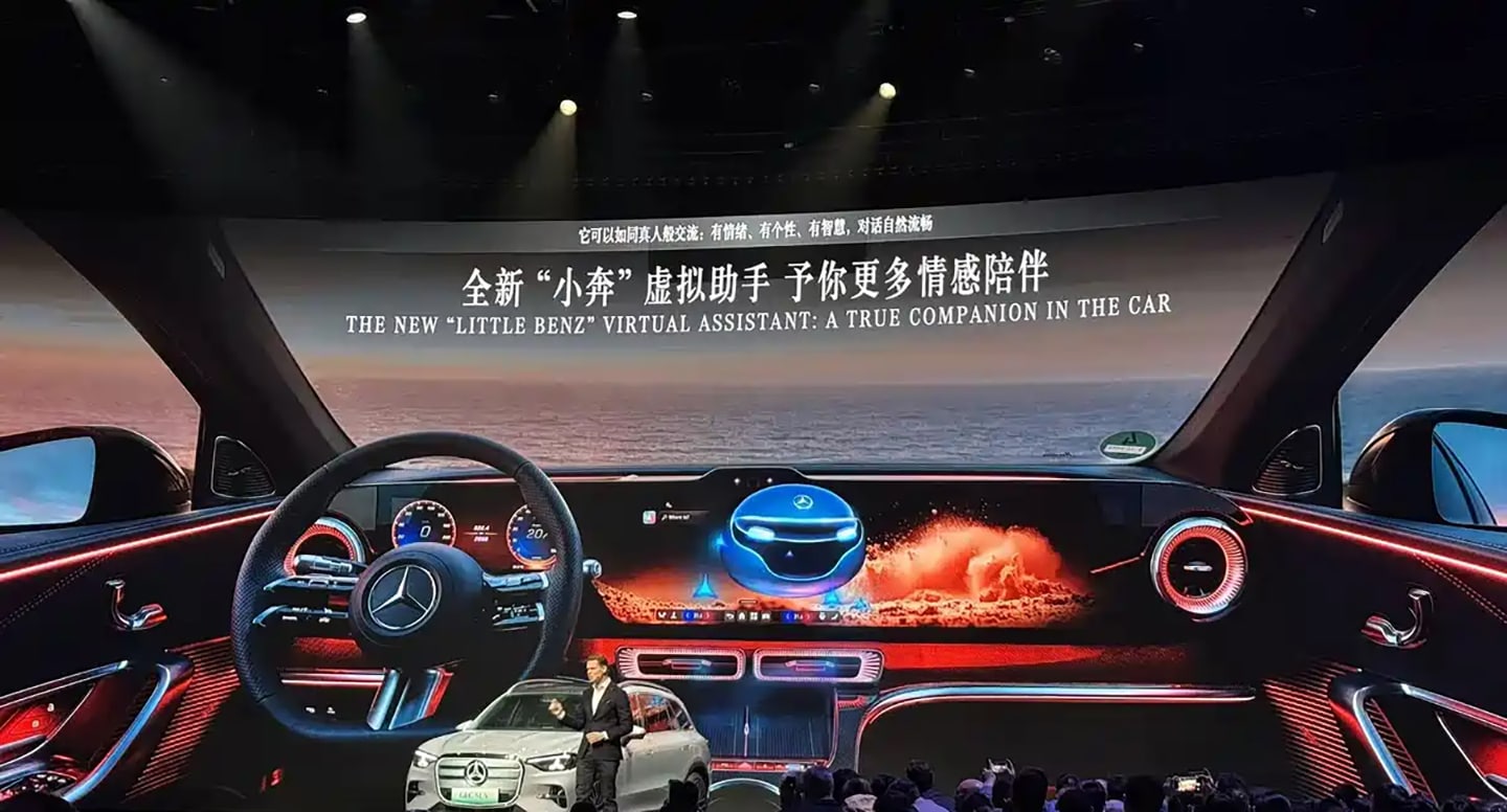 The cockpit echoes Mercedes' design language. A 39.1-inch MBUX screen dominates the dashboard, which features a 14.4-inch central display and a 12.3-inch front passenger screen. The system uses the new MB.OS operating system, based on a Qualcomm Snapdragon 8295 chip. The new virtual assistant, called Xiao Ben meaning Little Mercedes, supports OTA updates. While a head-up display with greater potential than before projects all essential information on the windscreen of the car.