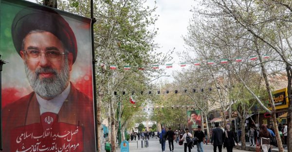 La gente passa davanti ai manifesti del nuovo leader supremo iraniano, Mojtaba Khamenei, affissi lungo una strada di Isfahan, in Iran, il 24 marzo 2026. REUTERS/Alaa Al Marjani